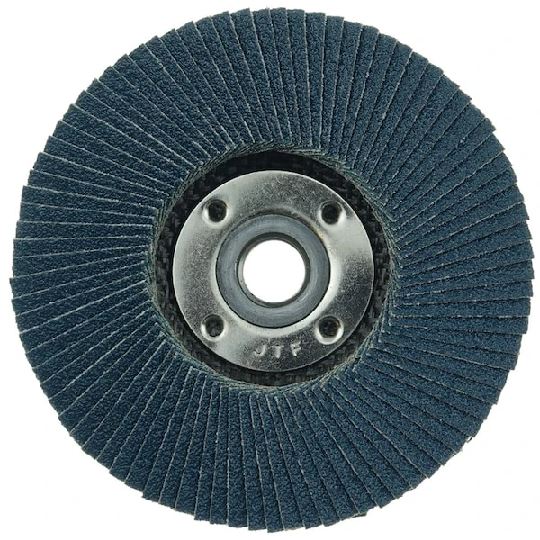 Tiger Big Cat 4.5 inch type 27 high density flap discs offer the widest footprint in the industry for grinding steel and stainless steel. The wider flaps in combination with the thicker high density profile conforms to curved and irregular surfaces better, producing a consistent finish and lasting 30-40% longer than a standard density flap disc. The high density flap design is conformable to irregular surfaces when grinding between 0° – 15° while the 40 grit abrasive grain is best for edge beveling, chamfering, weld grinding, and blending with a right angle grinder. This disc offers a metal 5/8″ – 11 nut that allows for quick changeovers and prevents the disc from sticking to the spindle. A thicker disc with larger flaps which conforms to curved and irregulars surfaces, resulting in a consistent finish. Flap design results in 30-40 percent longer life than standard flap discs. Thicker phenolic back provides more stability for the thicker cloth configuration. Contaminant-free (contains less than 0.1% Fe, S, Cl). Self-sharpening zirconia alumina (ZA) grains hold up under high temperatures and extreme pressure.
