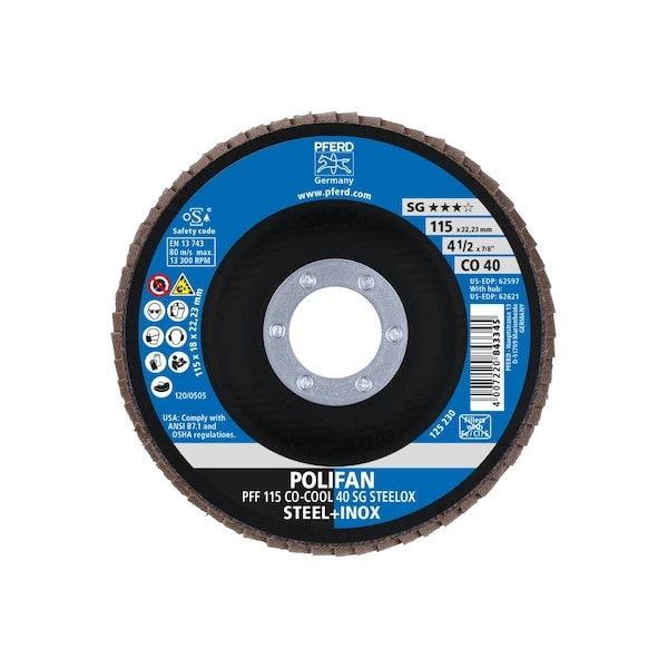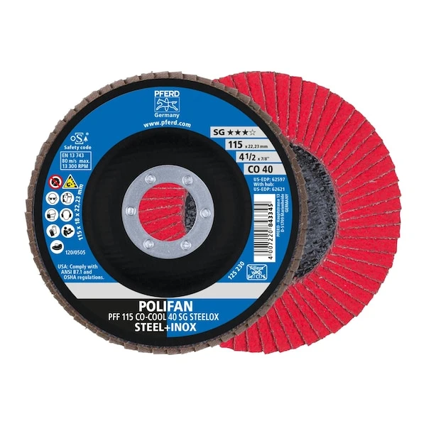 | Item | Flap Disc,Co-Cool,40Grit,T27,4-1/2″x7/8″ |