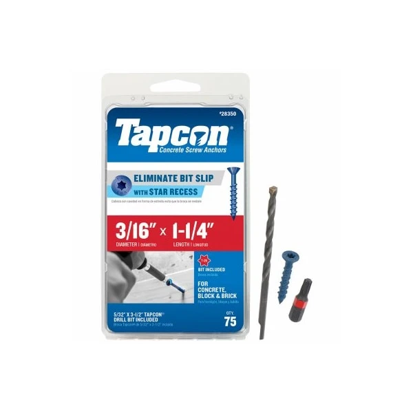 Tapcon, 75 Pack, 316 x 114 Star Drive Concrete Anchors