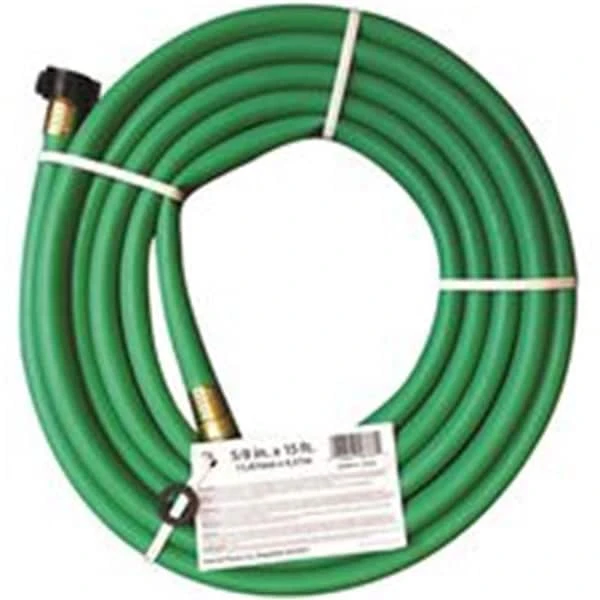 Vinyl reinforced hose with brass hose ends. Random pieces either 5/8 in. or 3/4 in. ID range from 11 ft. to 19 ft. in Length.