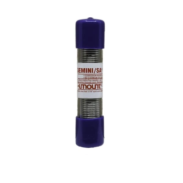 Gemini SAAn acid flux core silver solder for all metals; stainless, copper, bronze, brass, Monel, cast iron, nickel, and all alloys (no white metals).Features:- High Strength 16,000 psi- Easy To Use- Very Low Temperature- No Cadmium Or Lead- Stainless Color Match- Ideal For Food Service- Corrosion Resistant- No Zinc Or Antimony- Stays Bright- High Silver ContentGemini SA has a great variety of all purpose characteristics. In maintenance many metal repairs can be made with a low temperature solder-like material. Gemini SA produces high strength joints that resist corrosion and stay bright.No low cost metals such as lead, zinc, antimony or cadmium are used in this unusual product. The high silver content and flux make Gemini SA a universal metal mending tool for hundreds of maintenance application.