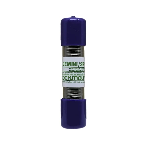 Gemini SRA rosin flux core silver solder for all metals; stainless, copper, bronze, brass, Monel, cast iron, nickel, and all alloys (no white metals).Features:- High Strength 16,000 psi- Easy To Use- Very Low Temperature- No Cadmium Or Lead- Corrosion Resistant- No Zinc Or Antimony- Stays Bright- High Silver ContentGemini SR has a great variety of all purpose characteristics. In maintenance many metal repairs can be made with a low temperature solder-like material. Gemini SR produces high strength joints that resist corrosion and stay bright.No low cost metals such as lead, zinc, antimony or cadmium are used in this unusual product. The high silver content and flux make Gemini SR a universal metal mending tool for hundreds of maintenance application.