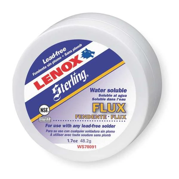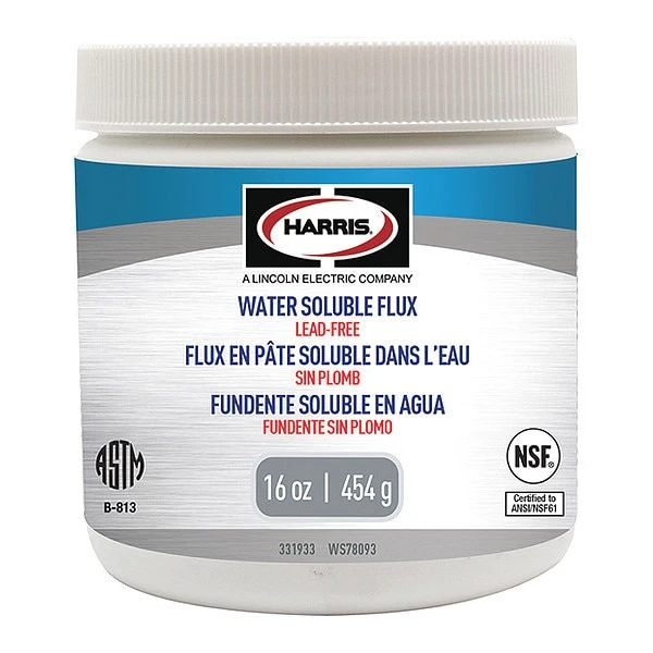 Water Soluble Lead Free Flux, Container Capacity 16 oz, Container Type Jar, Form Paste, Maximum Active Temperature 600 Degrees F, Flux Type Water Soluble, For Material Type Inorganic Acid, For Solder Type Lead Free, Standards ASTM B-813, NSF 61, Application General Purpose, Lead Content Lead-Free, Specific Gravity 0.97