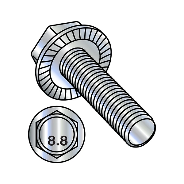 M8-1.25X25 Metric Din 6921 Class 8.8 Indent Hex Flanged Washer Serrated Screw Full Thd Zinc
