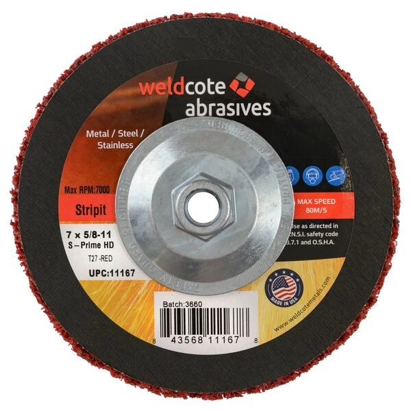 Stripit Wheels Are Excellent On Stainless Steel, Aluminum, Titanium, Non-Ferrous Metals And Fibre Glass. Use Stripit Wheels For Cleaning Welds, And Fast Removal Of Rust, Scaling, Oxidation, Paints And Sealants. Red Stripit Is More Rigid For Faster Working Conditions.
