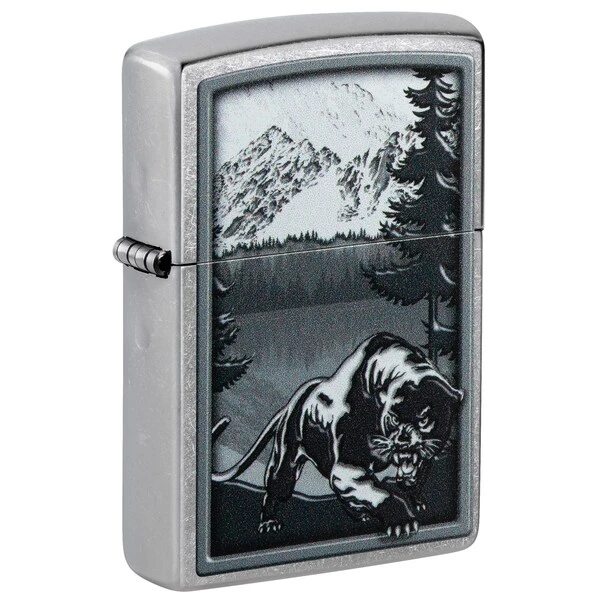 A monochromatic mountain lion prowls to the forefront of this classic Street Chrome lighter. The Color Image design is capped off with an equally majestic mountainscape background. Comes packaged in a gift box. For optimal performance fill with Zippo lighter fuel.